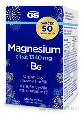 GS Magnesium citrát 1340 mg + B6 Darček tbl 50+50 navyše (100 ks)
