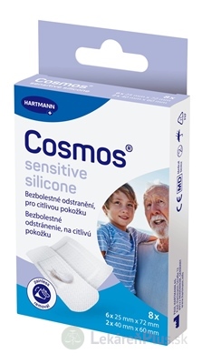 Cosmos Sensitive Silicone náplasť na rany na citlivú pokožku, 2 veľkosti (inov.2025) 1x8 ks