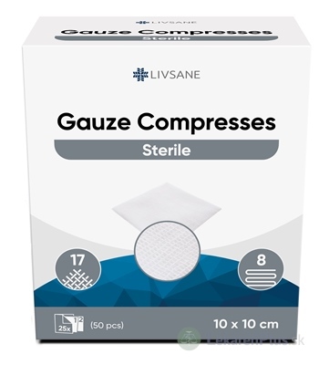 LIVSANE Sterilné gázové tampóny kompres 10x10 cm, 25x2 (50 ks)