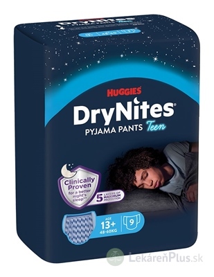 HUGGIES DryNites XL pre chlapcov (13+ rokov) plienkové nohavičky 48-60 kg, 1x9 ks