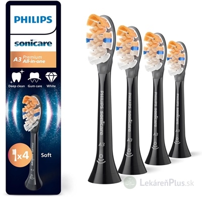Philips Sonicare A3 Premium All-in-One náhradné hlavice (HX9094/88), Soft, čierne, 1x4 ks