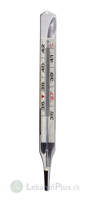 Klasický lekársky sklenený bezortuťový teplomer s Gáliom.