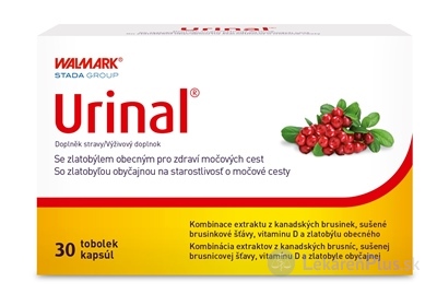 Urinal obsahuje kombináciu zložiek z kanadských brusníc ( Vaccinium macrocarpon - kľukva veľkoplodá) - prášok zo sušenej šťavy kanadských brusníc a ExocyanTM, vysoko koncentrovaný extrakt z kanadských brusníc (Vaccinium macrocarpon). Ďalej obsahuje extrakt zo zlatobyle obyčajnej (Solidago virgaurea) a vitamín D (prispieva k správnej funkcii imunitného systému).
